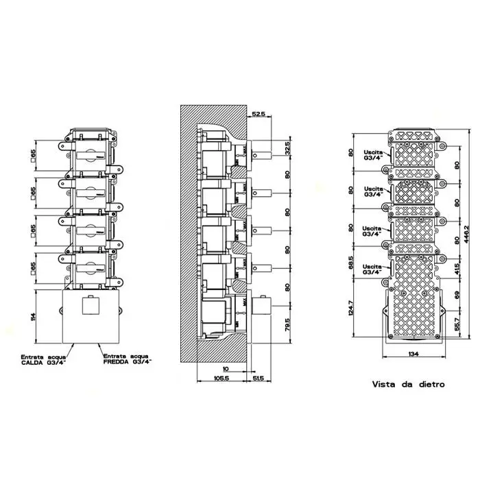 Gessi Rettangolo Встраиваемый термостатический смеситель, подключение на 3/4”, с 4мя независимыми выходами, внешняя часть, цвет: хром
