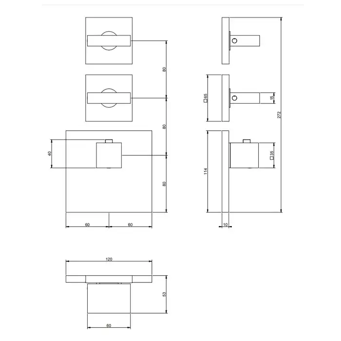 Gessi Rettangolo Встраиваемый термостатический смеситель, подключение на 3/4”, с 2мя независимыми выходами, внешняя часть, цвет: медь