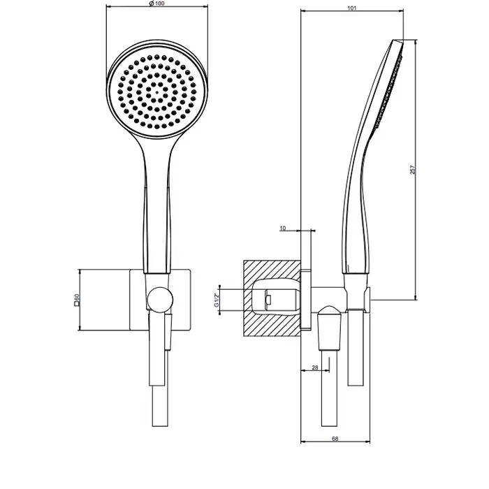 Gessi Rilievo Душевой комплект, состоящий из вывода воды на1/2", держателя, шланга 1,50 м и душевой лейки, цвет: nero XL