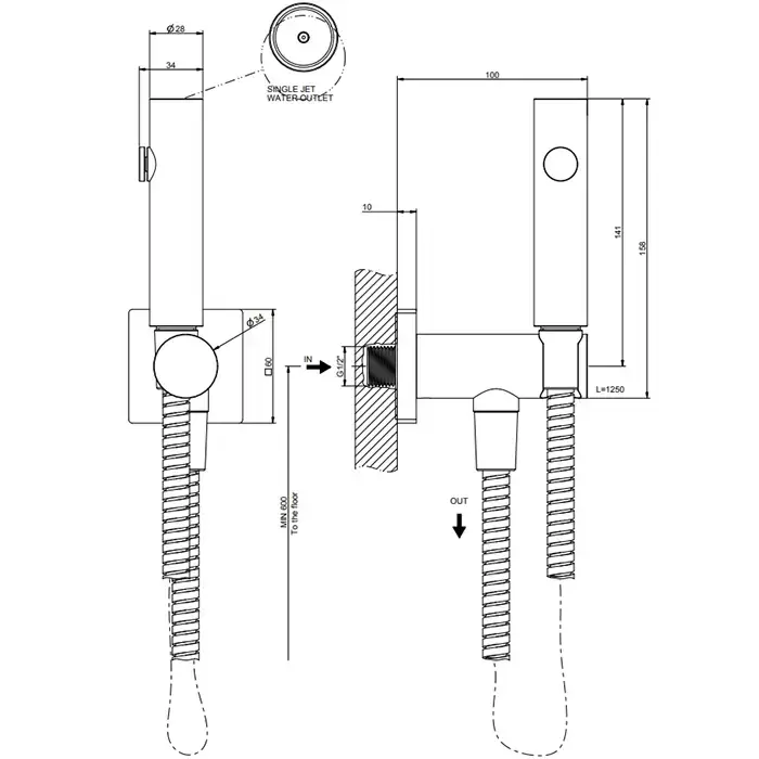 Gessi Rilievo Гигиенический душ настенный на 1/2", цвет: black XL