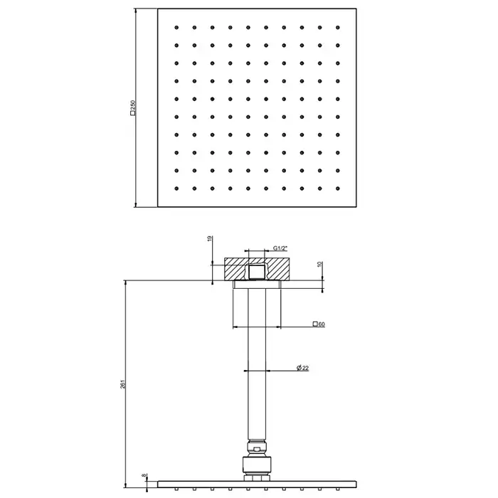Gessi Rilievo Потолочная душевая головка шарнирная 250x250 мм на 1/2", цвет: nero XL