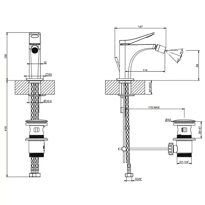 Gessi Rilievo Смеситель для биде на 1 отв., с донным клапаном излив 114мм, цвет: black XL