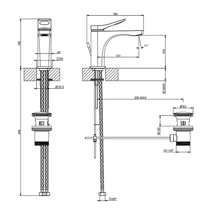Gessi Rilievo Смеситель для раковины на 1 отв. с донным клапаном h=156мм, излив 131мм , цвет: black XL