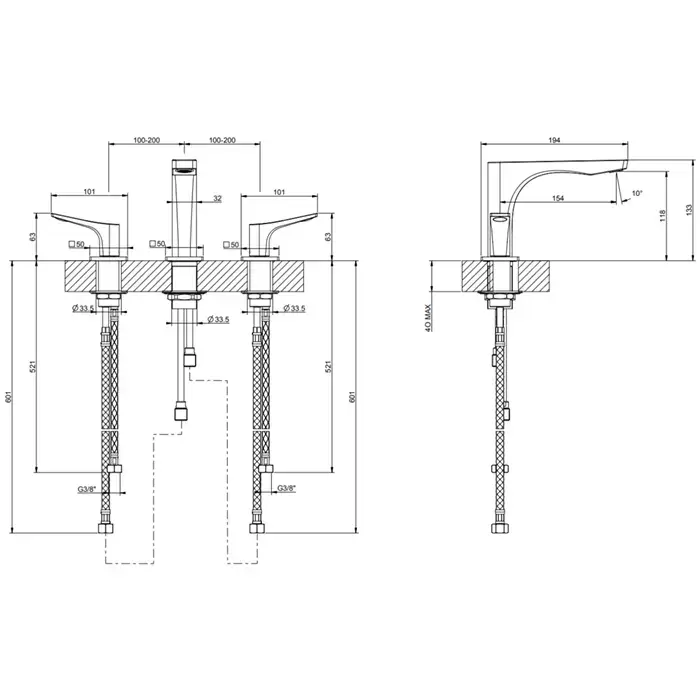 Gessi Rilievo Смеситель для раковины на 3 отв. без донного клапана h=125мм, излив 154мм, цвет: хром