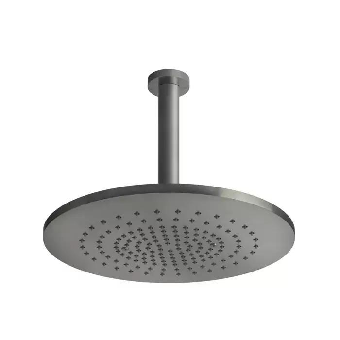 Gessi Shower316 Душевая головка шарнирная для потолочного крепления на 1/2” с защитой от известкового налёта, высота 243мм, цвет: шлифованная сталь