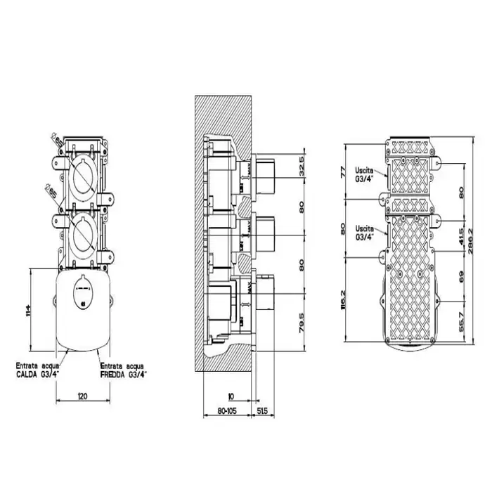 Gessi Tondo Встраиваемый термостат для душа, с 2мя независимыми выходами, верт/гориз установка, внешняя часть, цвет: хром