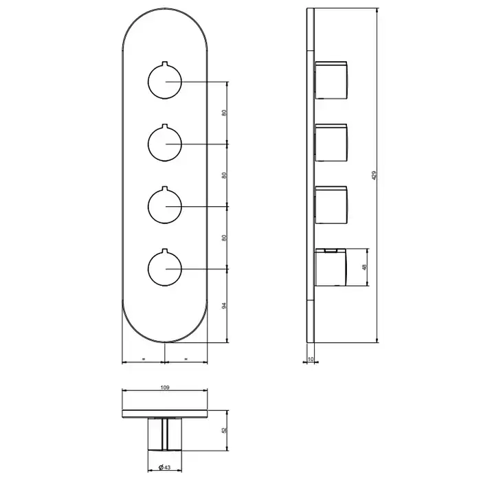 Gessi Tondo Welliness Смеситель для душа, встраиваемый, термостатический, внешняя часть, на 3 выхода, цвет: хром