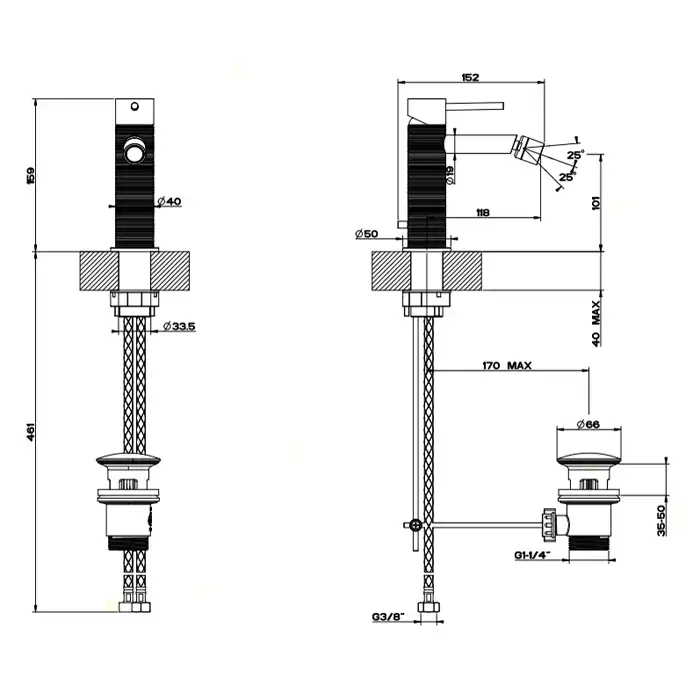 Gessi Trame Смеситель однорычажный для биде с донным клапаном, цвет: шлифованная сталь