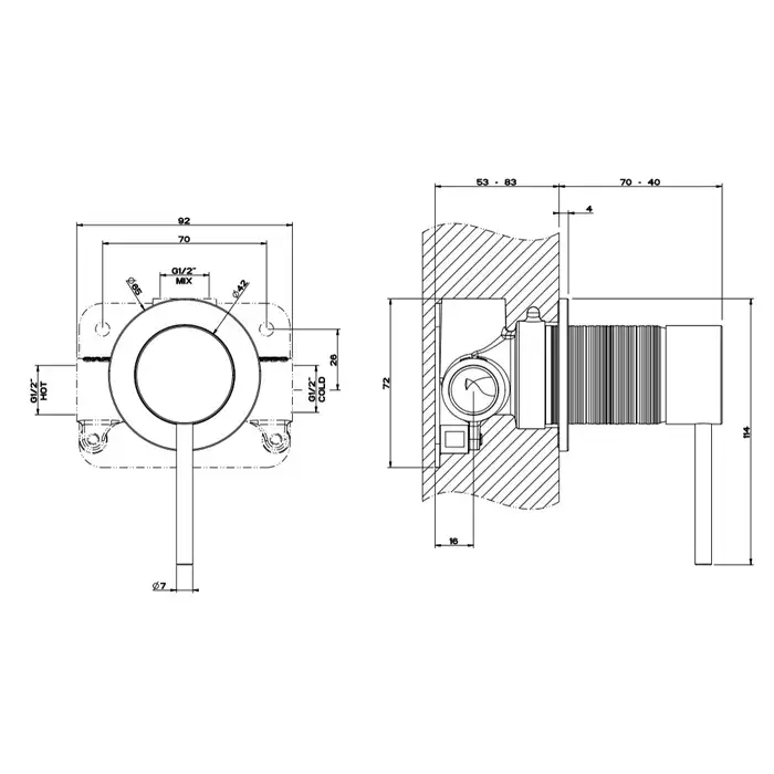 Gessi Trame Встраиваемый однорычажный смеситель, картридж Ø35 мм,одна позиция. внешняя часть, цвет: шлифованная сталь