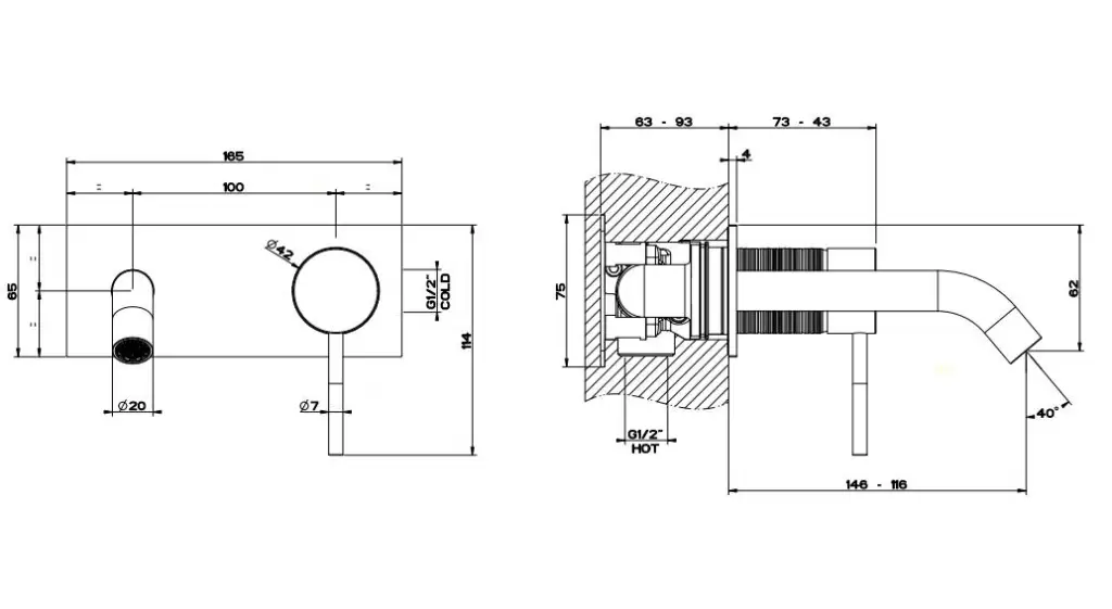Gessi Trame Встраиваемый однорычажный смеситель с изливом, без донного клапана. внешняя часть, цвет: шлифованная сталь