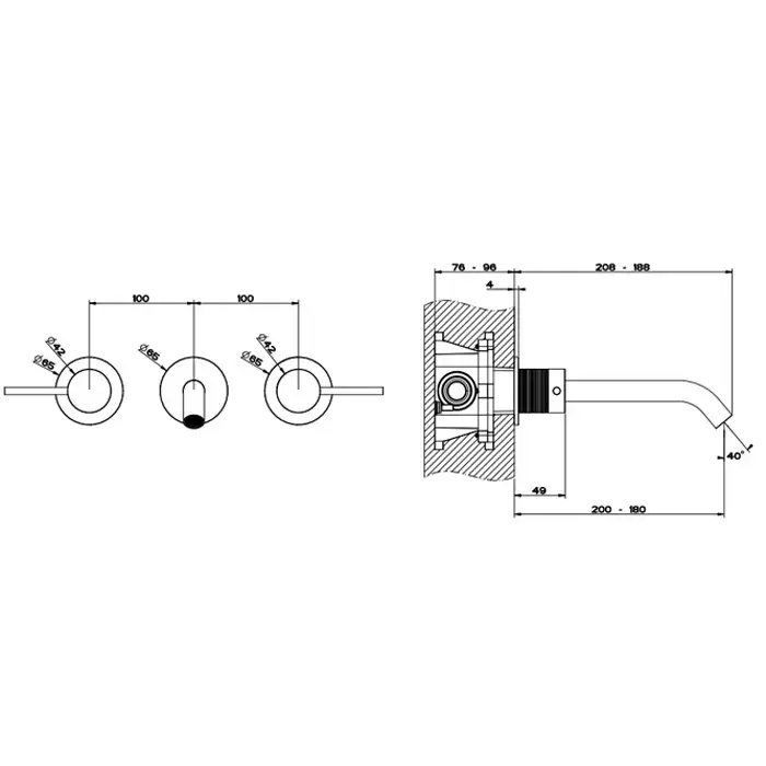 Gessi Trame Встраиваемый смеситель для раковины на 3 отверстия с изливом, без донного клапана., внешняя часть, цвет: шлифованная сталь