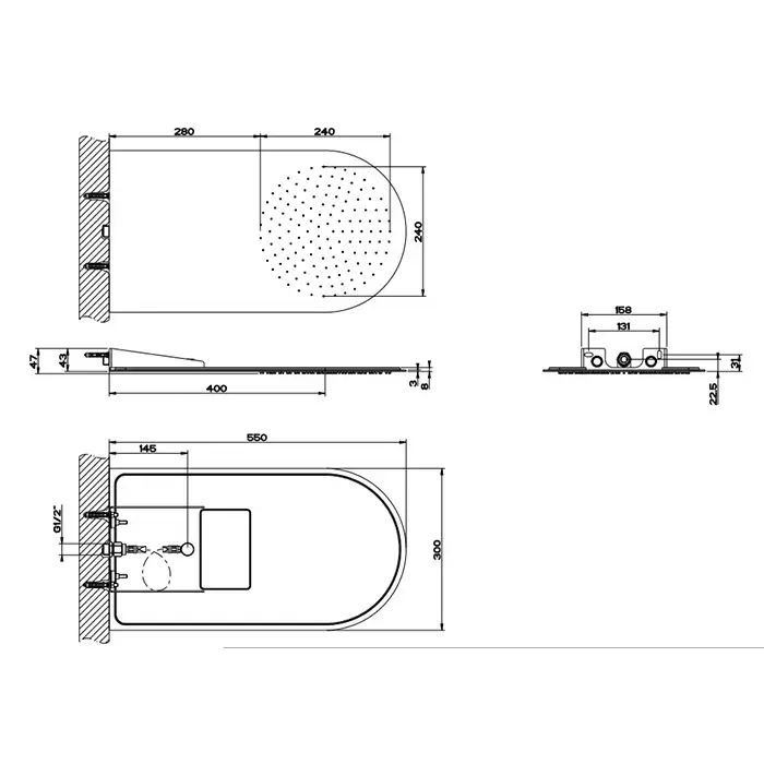 Gessi Tremillimetri Душевая головка для настенного крепления 30х55cм., цвет: Black Metal Brushed PVD