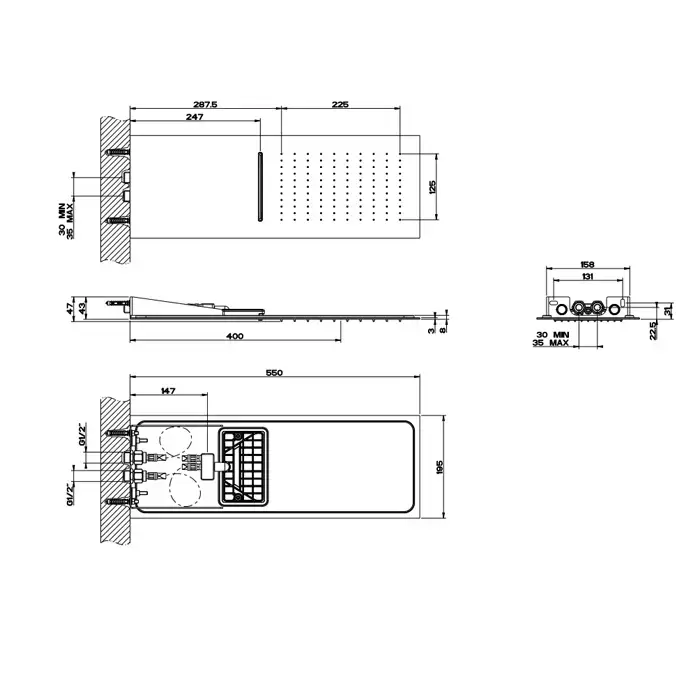 Gessi Tremillimetri Верхний душ 195х550 мм., для настенного монтажа, цвет: Steel Brushed