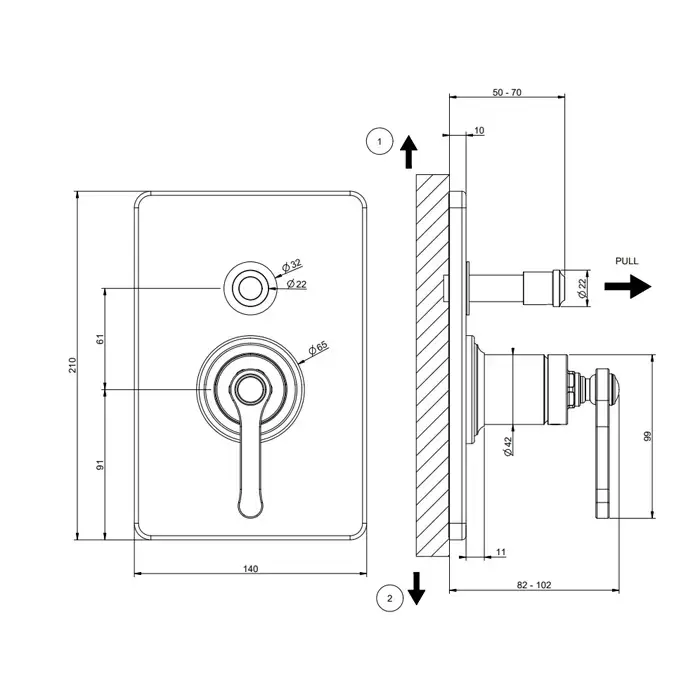 Gessi Venti20 Смеситель для душа, встраиваемый, с переключателем на 2 положения, внешняя часть, цвет: Aged Bronze