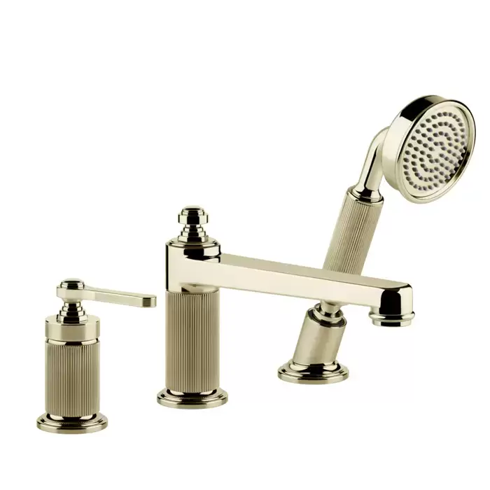 Gessi Venti20 Смеситель для установки на борт ванны на 3 отверстия, однорычажный, с ручным душем и шлангом 1500 мм., цвет: Brass PVD