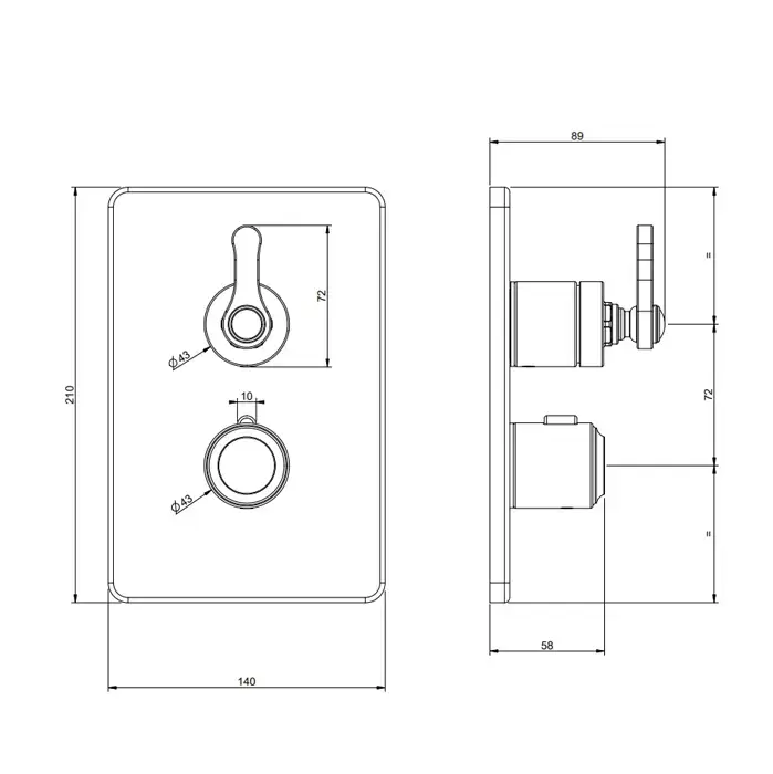 Gessi Venti20 Смеситель встраиваемый, термостатический, с переключателем на 2 положения, внешняя часть, цвет: Brass PVD