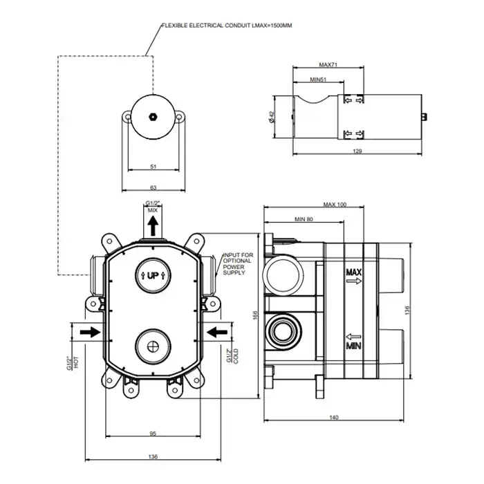 Gessi Встраиваемая часть для настенного электронного смесителя с удаленным управлением, цвет хром