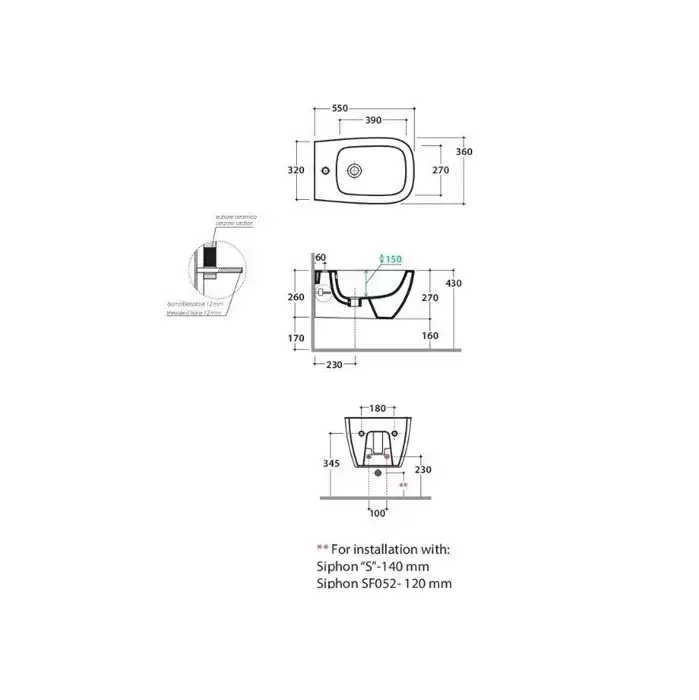 Globo Genesis Биде подвесное 55х36 см, с 1отв для смесителя, с креплением, цвет: Nero opaco
