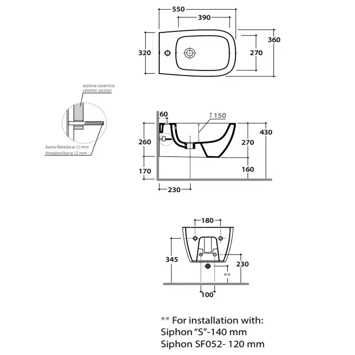 Globo Genesis Биде подвесное 55х36см., 1 отв., с креплением, цвет: белый матовый