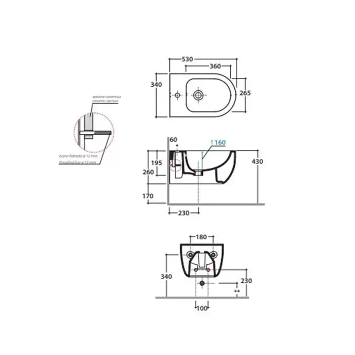 Globo Mode Биде подвесное, 53см., на 1 отв., цвет: белый