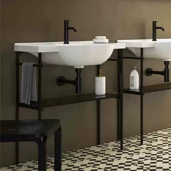 Globo Mode Консоль металлическая напольная 76.7x31.5xh85.5 см, для раковины ME080, цвет: черный матовый