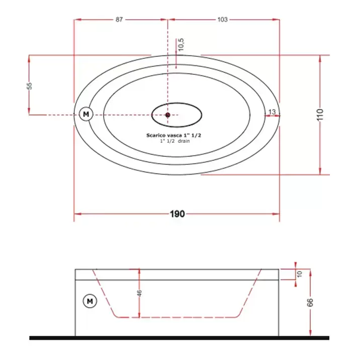Gruppo Treesse EOS 190 Ванна 190x110xh66 см., без гидромассажа, со сливной колонкой и 2 панелями для свободного размещения, цвет: белый