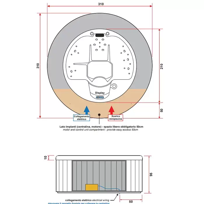 Gruppo Treesse Male Минибассейн 210*95см г/м, нагреватель 2kw, фильтр картридж, хромо-я, панель, цвет серый, акрил белый.