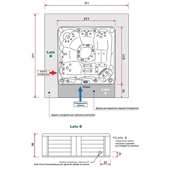 Gruppo Treesse Mykonos Минибассейн 211х211х86см., отдельностоящий с гидромассажем, с цифр и автомат сист. цвет: серый/белый