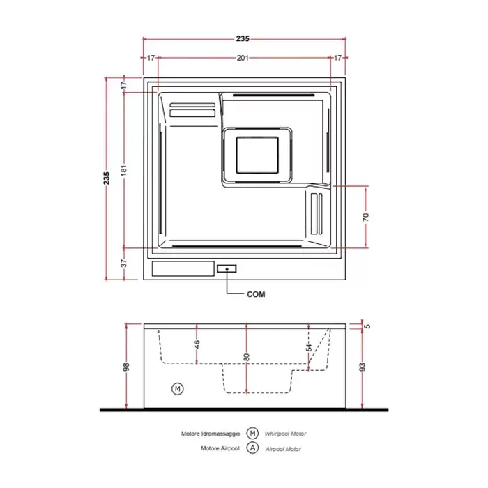 Gruppo Treesse Phantom Минибассейн 235x235x98см., м.г/м+нагреватель,фильтр-картридж, внеш. панель VTR, автонаполнение компл PR1, цвет: белый