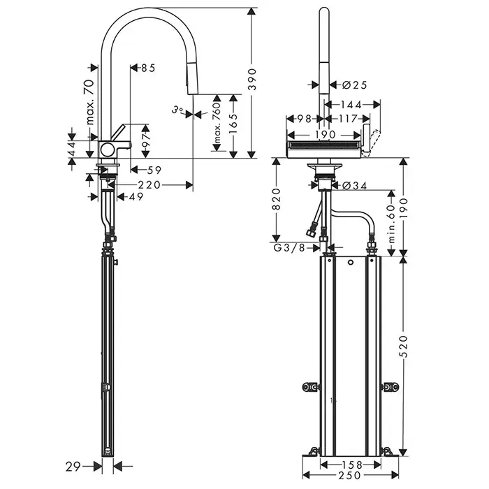 Hansgrohe Aquno Select M81 Смеситель для кухни, 1 отв., каскад, цвет: сталь