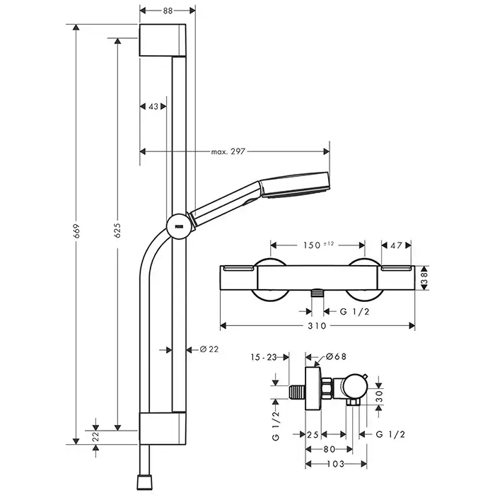 Hansgrohe Ecostat Душевой гарнитур с термостатическим смесителем, ручным душем и душевой штангой 65см, цвет: хром