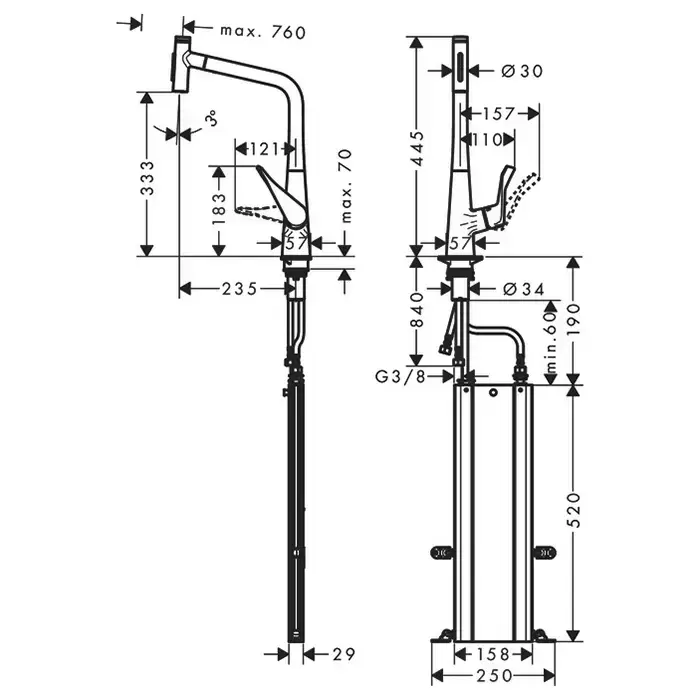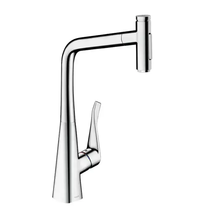 Hansgrohe Metris M71 Смеситель для кухни, на 1 отв, поворотный излив: 23.5см с вытяжным душем, 2jet, h: 33.3см, sBox, цвет: хром