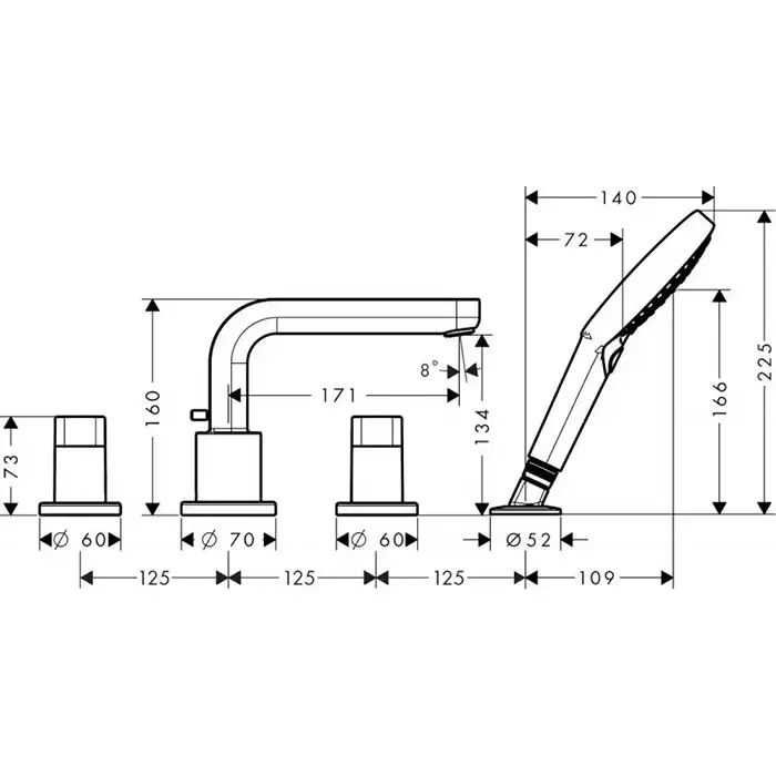 Hansgrohe Metris S Смеситель на край ванны, на 4 отв., цвет: хром