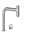 Hansgrohe Metris Select M71 Смеситель для кухни, на 2 отв, поворотный излив: 22.1см с вытяжным душем, 1jet, h:20.8см, sBox, кнопка вкл/выкл, цвет: хром