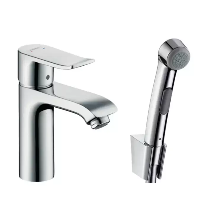 Hansgrohe Metris Смеситель для раковины, на 1 отв., с гигиеническим душем (комплект: шланг: 160см, кронштейн, лейка), цвет: хром