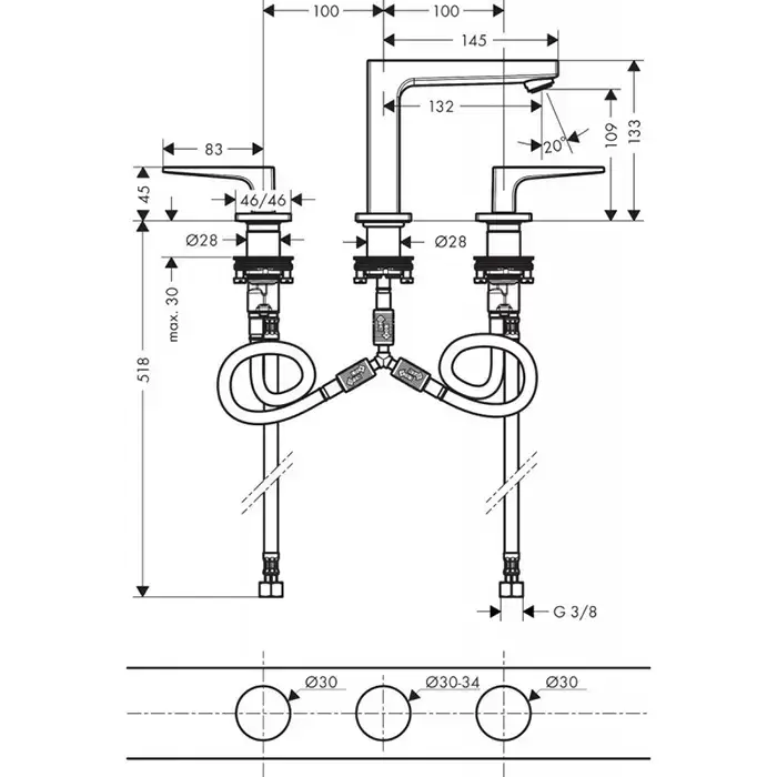 Hansgrohe Metropol Смеситель для раковины, на 3 отв., цвет: хром