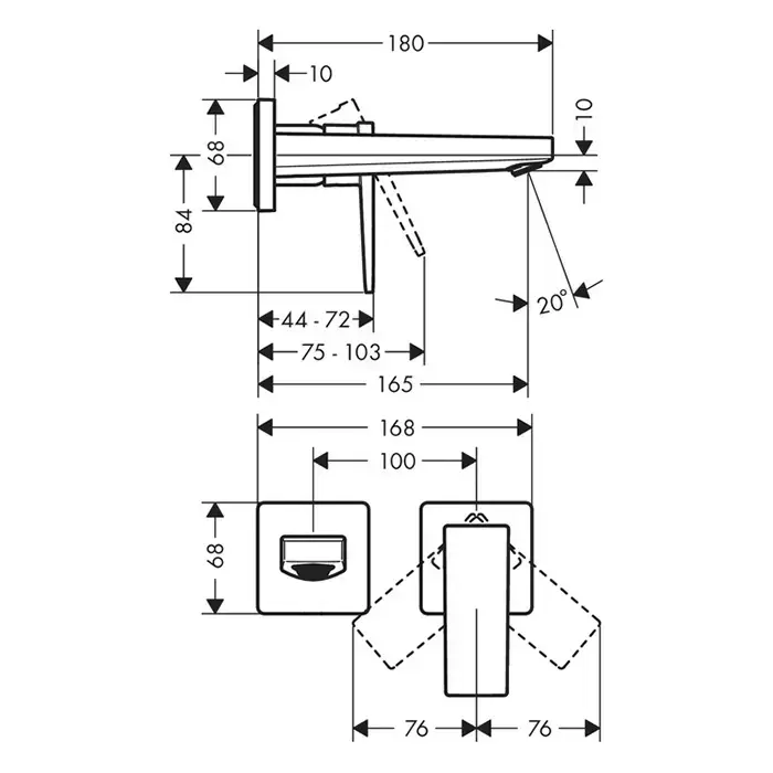 Hansgrohe Metropol Смеситель для раковины, .однорычажный, настенный, излив: 18см., внешняя часть, цвет: хром