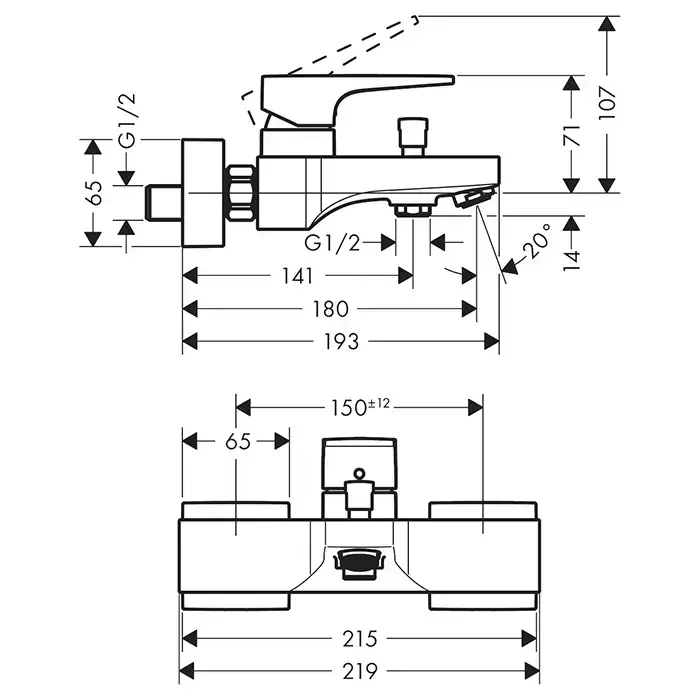 Hansgrohe Metropol Смеситель для ванны, настенный, излив: 18см, цвет: шлифованная бронза
