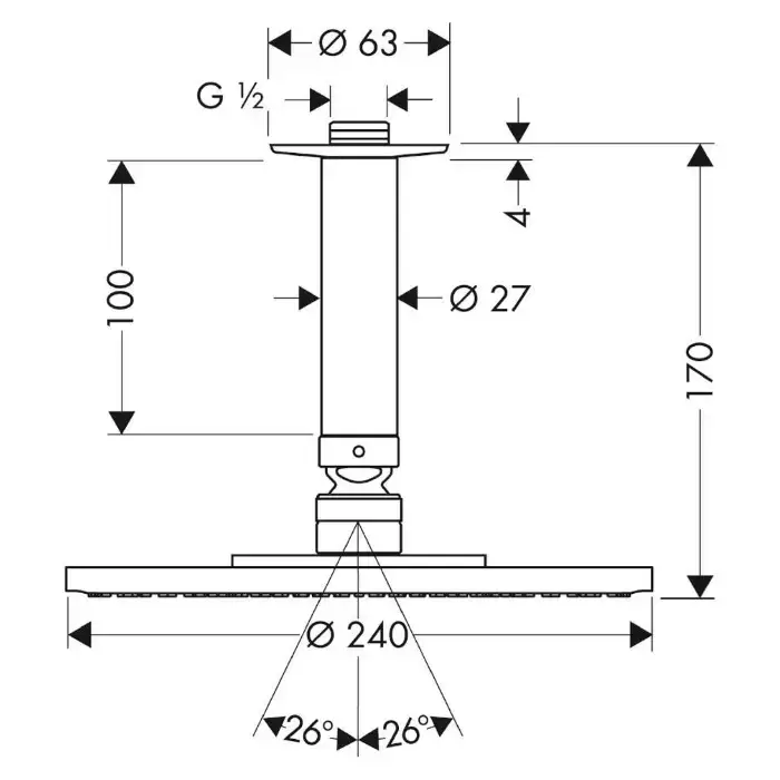 Hansgrohe Raindance Air Верхний душ, с потолочным подсоединением, экстра широкая душевая струя, с технологией AIR, защита от загрязнений QuickClean, с потолочным подсоединением 100 мм, с защитой от люфта, цвет: хром