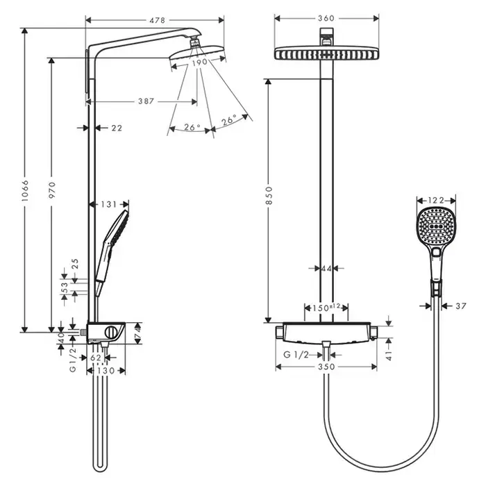 Hansgrohe Raindance Select 360 Showerpipe Душевая система, с верхним душем 36х19см, термостатический смеситель , с ручным душем, цвет: хром