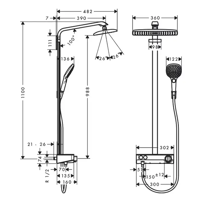 Hansgrohe Raindance Select E 360 Showerpipe 1 jet Душевая система, с верхним душем 36х19см., ручным дешем, и термостатическим смесителем, цвет: хром/белый