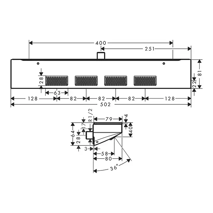 Hansgrohe Rainfinity Боковой душ 50.2х8.1см., с полкой, цвет: белый матовый