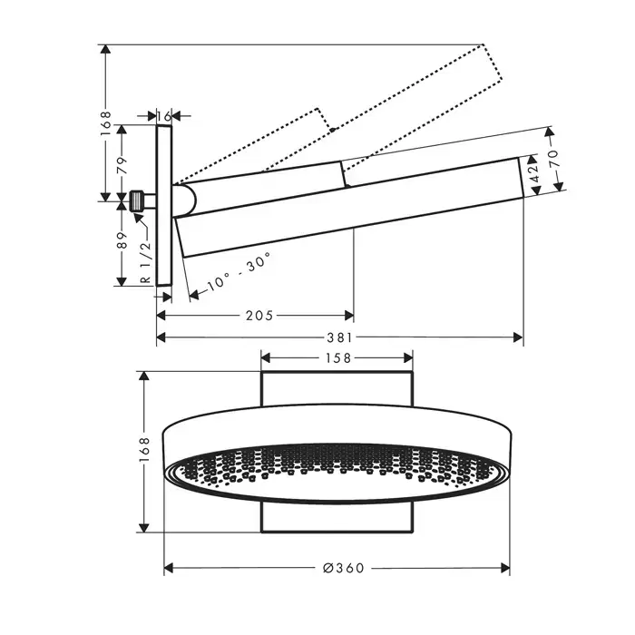 Hansgrohe Rainfinity Верхний душ 360 1jet с настенным креплением, цвет: шлифованная бронза