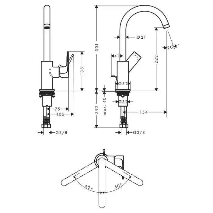 Hansgrohe Rebris E Смеситель для раковины, 1 отв., с поворотным изливом, с донным клапаном, цвет: хром