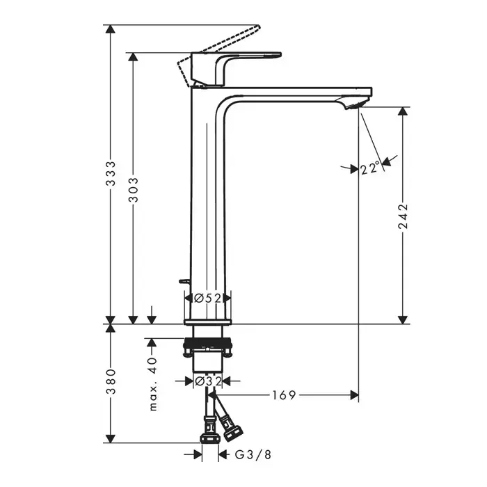 Hansgrohe Rebris E Смеситель для раковины-чаши 240, однорычажный, CoolStart, со сливным гарнитуром, цвет: матовый черный