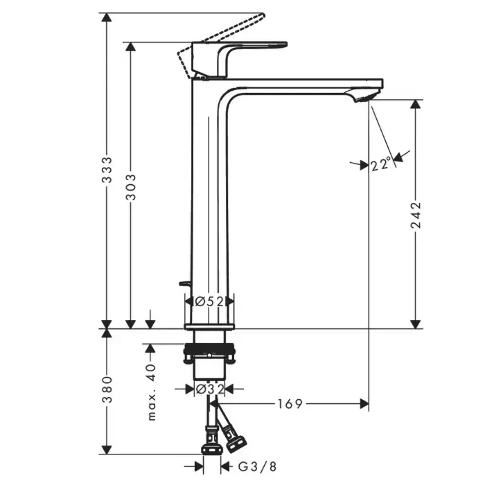 Hansgrohe Rebris S Смеситель для раковины, высокий, 1 отв., с донным клапаном, цвет: хром