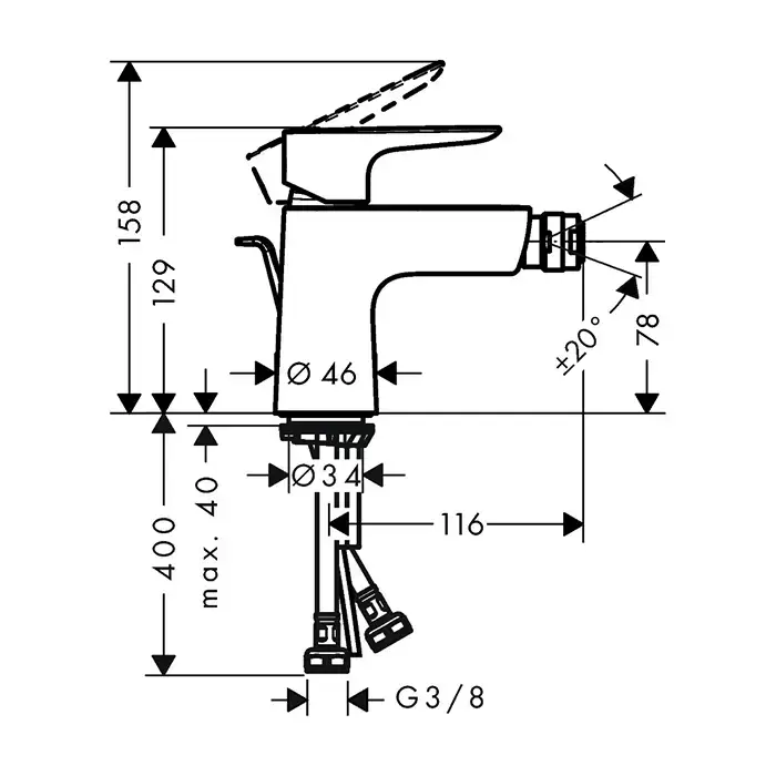 Hansgrohe Talis E Смеситель для биде на 1 отв, с донным клапаном, излив 116мм, цвет: черный матовый