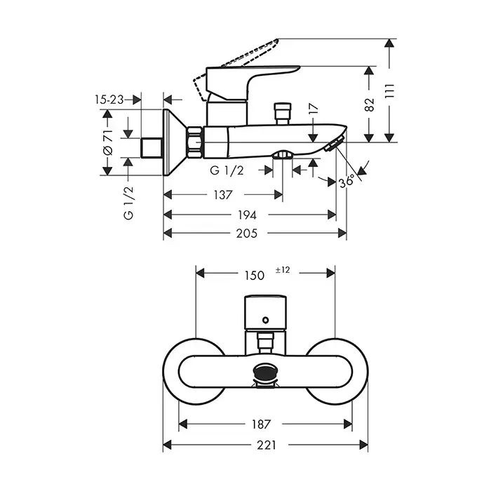Hansgrohe Talis E Смеситель для ванны настенный, излив 194мм, цвет: черный матовый