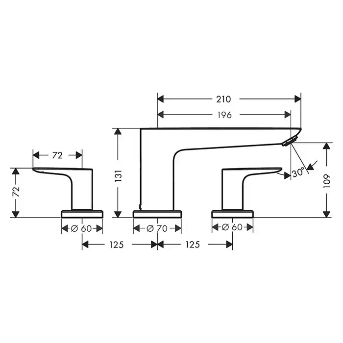 Hansgrohe Talis E Смеситель на борт ванны , на 3 отв., цвет: хром