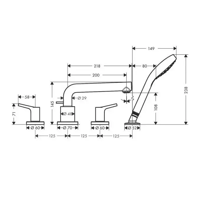 Hansgrohe Talis S, Смеситель для ванны и душа, на 4 отверстия, Цвет: хром